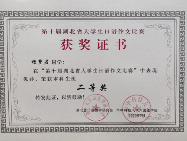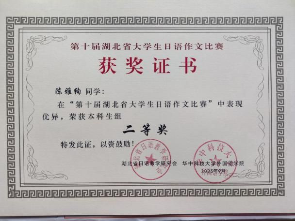 日语系学生在湖北省大学生日语作文比赛中斩获佳绩